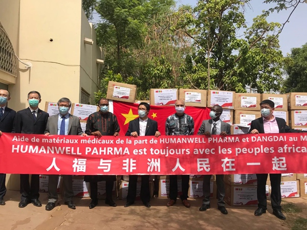2020年,新冠病毒席卷全球,包括马里和埃塞俄比亚在内的非洲医药市场,尤其是大输液供给处于极其短缺的状态。危急时刻,人福非洲药业和人福马里坚决保障对西非市场的药品供给,成为当时西非唯一一家坚持生产大输液的企业。“就算仅我们一家,药品供应也不能断。”在保障员工健康安全的情况下,众志成城、开足马力继续生产经营,为西非人民防疫抗疫、健康安全做出了表率。人福埃塞药业也紧急申请并获批手消毒液生产资质,给当地保供防疫物资。