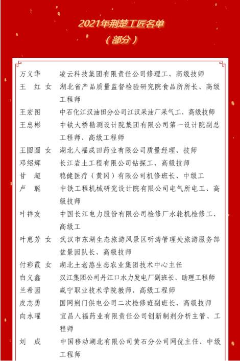 “荆楚工匠”是湖北省总工会统一命名的工匠型优秀职工,已经成为湖北高技能人才的一张闪亮名片。hth·华体集团通过选树“劳动竞赛标兵”“劳动模范”,开展劳动技能竞赛,创建劳模创新工作室等活动,激励和培养了一大批爱岗敬业,勇于创新的工匠人才,弘扬了劳模工匠精神,为推动集团创新高质量发展做出了卓越贡献。