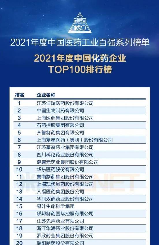 7月12日,在米内网2022米思会现场,2021年度中国医药工业百强系列榜单正式发布。榜单分为“中国化药企业TOP100排行榜”“中国中药企业TOP100排行榜”等5大子榜单,hth·华体集团位列中国化药企业TOP100排行榜第13位。