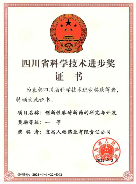 近日,由四川大学华西医院、宜昌人福药业有限责任公司、四川海思科制药有限公司、成都华西海圻医药科技有限公司共同完成的“创新性麻醉药的研究与开发”获得2021年四川省科技进步一等奖。